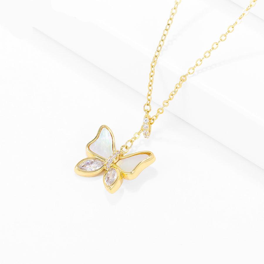 Introducing the Butterfly Cluster Necklace, inspired by our Constellation Collection. This stunning piece features delicate butterflies adorned with sparkling crystals and shells, each representing a constellation. Perfect for any occasion, it adds celestial elegance and a touch of whimsy to your look. Meticulously crafted, the Butterfly Cluster Necklace will make you shine like the stars.