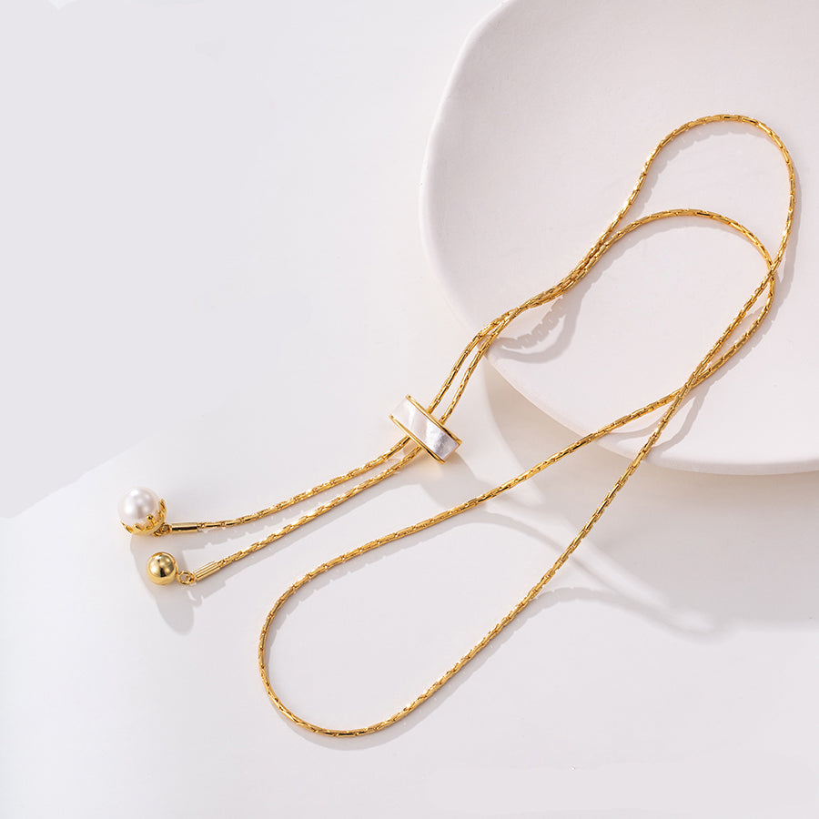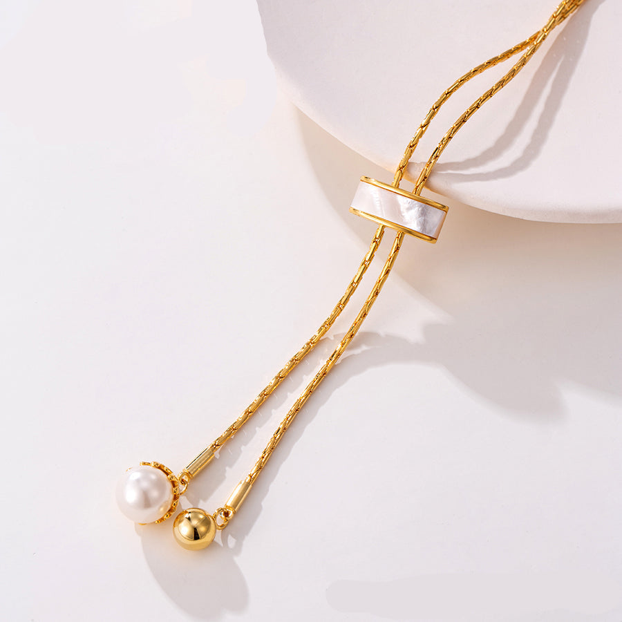 The Sea Blossom Necklace features a stunning combination of shell detailing and lustrous pearls, capturing the serene beauty of the ocean. The soft, natural textures of the shell are beautifully complemented by the elegant pearls, creating a piece that radiates coastal charm and timeless elegance. Perfect for those who love the ocean's calm and grace, this necklace brings a touch of the sea wherever you go.