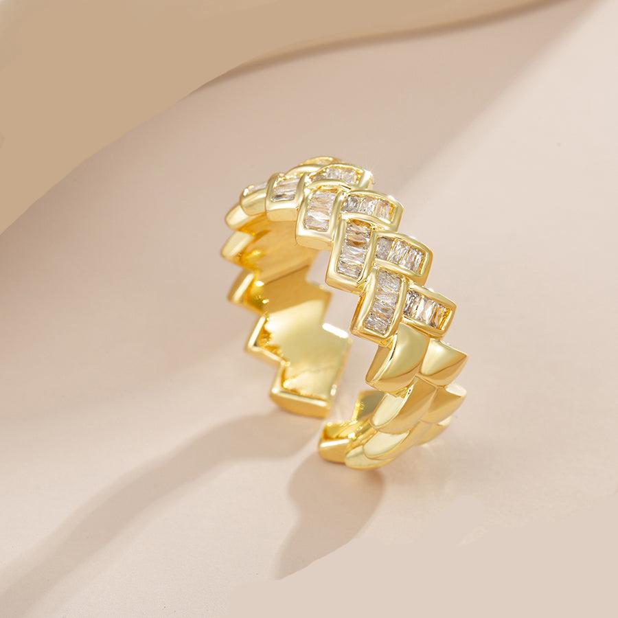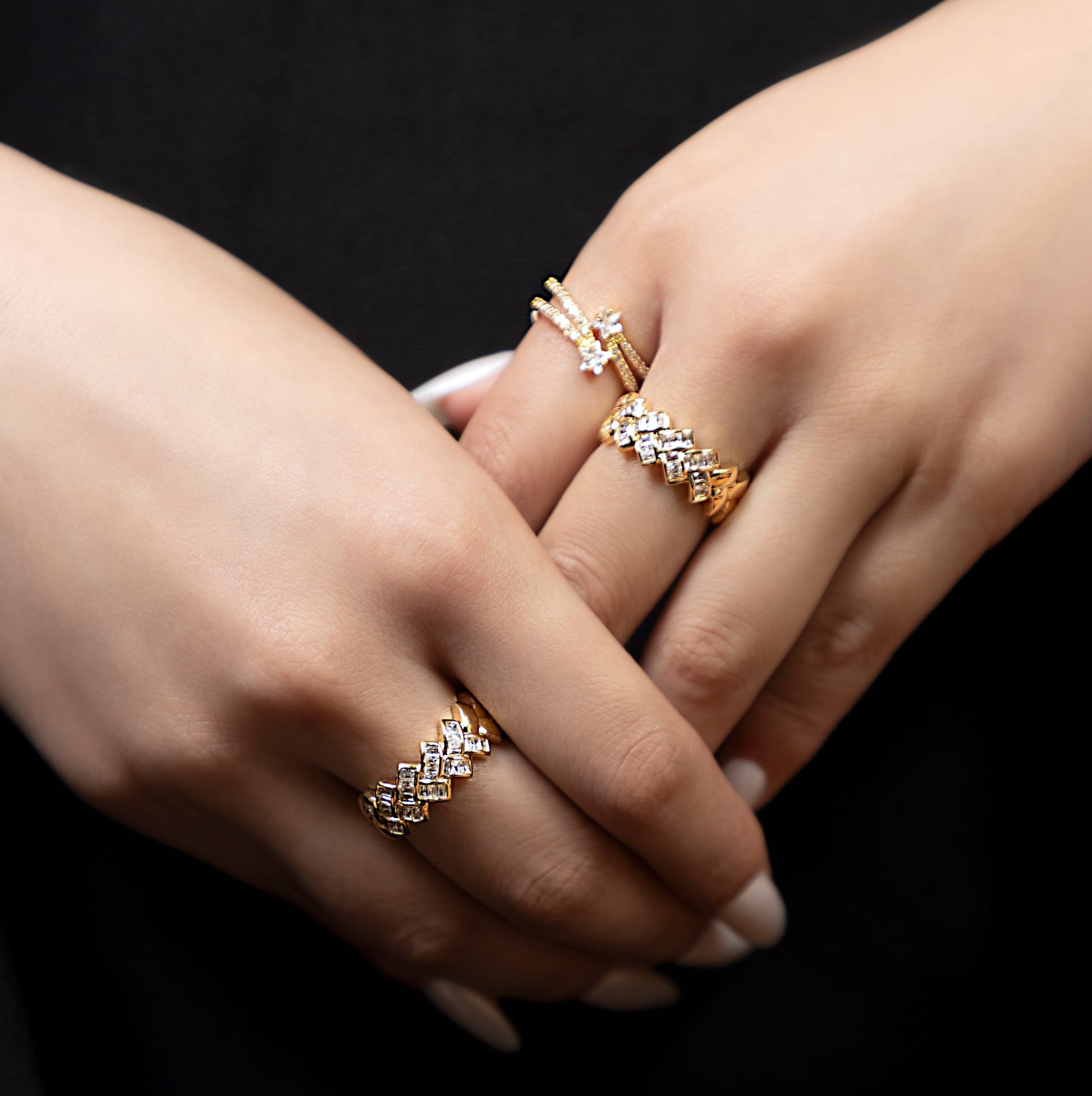The Zirconia Glow Band is a stunning piece that blends timeless elegance with modern brilliance. Set with a row of radiant zirconia stones, each carefully placed to catch the light, this ring creates a mesmerizing glow that shines with every movement. The sleek band design enhances the brilliance of the stones, offering a refined and sophisticated look. Perfect for adding a touch of luxury to any occasion, the Zirconia Glow Band is a versatile statement piece that embodies understated glamour."